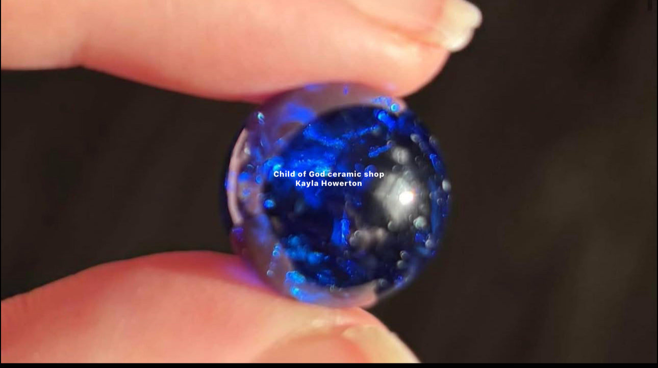 55 count of cobalt blue glass cracked marbles to be used as tree lights on a ceramic tree. These are made from solid glass marbles we make these at are shop if you need a large orders over 5 bags we do offer bulk discounts please email us at childofgodceramicshop@gmail.com for those orders .